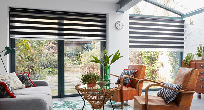 - Màn cầu vồng: Còn được gọi là màn cuốn đôi, màn cầu vồng có đến hai lớp vải, nhân đôi lợi ích cũng như nhân đôi tính thẩm mỹ cho cả căn phòng. Với kết cấu vải độc đáo, xen kẽ giữa các lớp vải và lưới trên bề mặt vải, tùy vào cách điều chỉnh các dải này mà màn sẽ chắn sáng hay lọc sáng tùy vào ý muốn của bạn